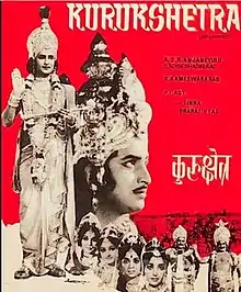 Kurukshetra is a 1945 Indian Hindi-language film directed by Rameshwar Sharma.[1] Produced Under the banner of Unity Pictures it starred K. L. Saigal as Karna, P. V. Narasimha Bharathi as Krishna, Radharani, Nawab, Shanti, Biman Bannerji and Shamli and had music composed by Ganpatrao.[2] The film was cited as an offbeat film of K. L. Saigal, directed by a relatively unknown director; it's stated to be a "forerunner" to later Art Cinema. It was also the on-screen debut for actor Ajit Khan.[3]