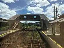 The station consists of two opposed ground-level side platforms connected by a footbridge. The station is unattended.