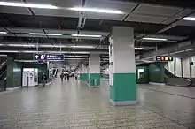 [1] The tracks of platform 1 and 2 are located next to each other in the middle of the station. Passengers have to ride different escalators up as according to the platform they want to go to.