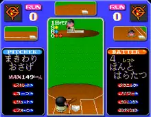 Kyūkai Dōchūki is a spin-off of Yokai Dochuki, an older Namco arcade game from 1987 that has the distinction of being the company's first 16-bit video game.[1] The name is also a play on the title of the latter; "yakyu" is the Japanese word for baseball, which the development team thought sounded similar to the "yokai". Gameplay itself draws inspiration from Namco's Family Stadium franchise and its sister series World Stadium, with large, caricature-esc players and a more comical, "super-deformed" appearance.[1] It ran on the Namco System 2 arcade system board, which previously powered games like Valkyrie no Densetsu, Burning Force, and Final Lap. A home conversion for the Mega Drive was released in Japan on July 12, 1991.[2]