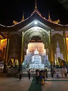 Kyauktawgyi Buddha Temple (Burmese: ကျောက်တော်ကြီးဘုရား) is a Buddhist temple located on Mindhamma Hill on Insein Township, Yangon, Burma.[1] The temple houses a 37 feet (11 m) feet tall Buddha called the Loka Chantha Abhaya Labha Muni (လောကချမ်းသာအဘယလဘ မုနိရုပ်ပွားတော်မြတ်ကြီး), which is carved out of a single piece of white marble quarried in Sagyin Hill, Madaya Township, Mandalay Region.[1] The image weighs approximately 560 tons.[2] The Buddha is carved making the abhayamudra (အဘယမုဒြာ), the gesture of fearlessness.[3]