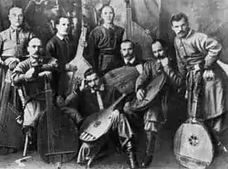 The group was initially known as the Kobzar Choir and was established in August 1918 under the direction of the renowned bandurist virtuoso Vasyl Yemetz, having its first performance in November that year.[1] The group continues to actively perform to this day as the Ukrainian Bandurist Chorus.
