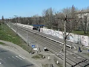 Kyivska Rusanivka (Ukrainian: Київська Русанівка) is a railway stop that is located in Kyiv, Ukraine. It is part of the Kyiv Directorate of Southwestern Railways.[1] It was opened in 1974 due to the appearance and construction of the Rusanivka district.