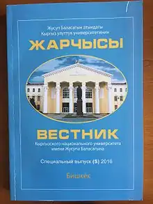 - "Кыргызский национальный университет имени Жусупа Баласагына" [Kyrgyz National University named after Jusupa Balasag]. knu.kg (in Kyrgyz). Retrieved 2023-09-06.