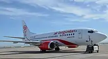 Kyrgyzstan Air Company, operating as Air Kyrgyzstan (Kyrgyz: Эйр Кыргызстан Авиакомпаниясы, Eýr Kyrgyzstan Aviakompaniýasy; Russian: Авиакомпания «Эйр Кыргызстан», Aviakompaniya «Air Kyrgyzstan»), is the flag carrier of Kyrgyzstan based in Bishkek.[2] It operates scheduled domestic and international services to 13 destinations, as well as charter services. Its main hub is Manas International Airport in Bishkek, with a hub at Osh Airport in Osh.[3]