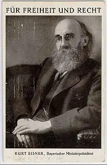 - The tumults in Bavaria keep going on: Minister-president Kurt Eisner is assassinated on February 21, 1919; on April 6 the Bavarian Soviet Republic is proclaimed. A few weeks later, the police headquarters is seized by troops of the Bavarian Red Army, and the whole class of police cadets taught by Grüner is taken prisoner; they fear to be shot against the wall, but are set free when the Reds flee from the advancing free corps.[5]