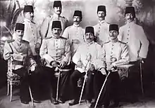 Mustafa Kemal Ataturk and Ottoman 5th Army (HQ Damascus) officers. First row the far right is Mustafa Kemal Atatürk and next to him is Lütfi Müfit Özdeş (Beirut, 15 July 1906)