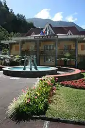 The bronze statue's placement before Salazie town hall also situated it right in front of the nearby church, pastored by a conservative young priest born in 1902, Father Gabriel Bourasseau.[2] Having been active in Young Christian Workers, he passed through the novitiate in Orly and on Madagascar, whence he was sent to Réunion at the end of two years. He had already worked as a vicar at Champ-Borne and on the Plaine des Cafres before arriving at Salazie, where he rebuilt the old wooden church into an enlarged stone parish church.[6]