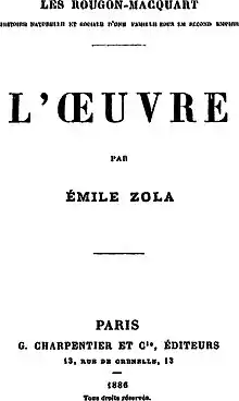 L'Œuvre is the fourteenth novel in the Rougon-Macquart series by Émile Zola. It was first serialized in the periodical Gil Blas beginning in December 1885 before being published in novel form by Charpentier in 1886.