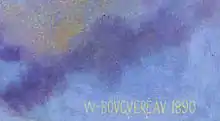 L'Amour et Psyché, enfants is an oil painting by William Adolphe Bouguereau in 1890. It is currently in a private collection. It was displayed in the Salon of Paris in 1890, the year Bouguereau was President of the Société des Artistes Français.[1] The painting features Greek mythological figures Eros and Psyché, sharing an embrace and kiss. Bouguereau was a classical-style painter in the Neoclassical era of art. The painting is characterized by the frothy background the figures delicately stand on. It depicts the beginning of the forbidden romance of Cupid and Psyche, a popular subject at the time of execution.