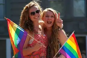 Hate crimes based on sexual orientation or gender identity are punishable by federal law under the Matthew Shepard and James Byrd, Jr. Hate Crimes Prevention Act of 2009, but many states lack state-level hate crime laws that cover sexual orientation and/or gender identity.[10] Hate speech laws, including those that relate to sexual orientation or gender identity, are unconstitutional, due to the First Amendment to the United States's broad protections for free speech.[11] During the 2020s, gender identity issues became prominent topics in American politics, particularly regarding athletics and transgender-related healthcare for minors.[12][13][14]