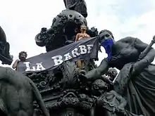 Their first public demonstration took place on February 28, 2008, during a signing session of the Éric Zemmour at Drugstore Publicis in Paris.[3] According to the Le Nouvel Observateur, La Barbe is legally founded as non-profit association on March 8, 2008 for international women's day.[4] The group demonstrated in Paris with Act Up-Paris and the Panthères roses, attaching a beard to one of the statues on the Place de la République.[5]