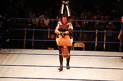 As well as being opposed by Batista and The Undertaker, the group faced a different kind of opposition from Chavo Guerrero Jr. Chavo, Vickie's nephew, voiced his misgiving about her relationship with Edge, thinking it disrespected the Guerrero name, alluding to Vickie being the off-screen widow of Eddie Guerrero.[11] Despite being forced to face Edge's enemies,[12] Chavo was soon brought around and welcomed into the group when Edge appeared on ECW on Sci-Fi in mid-January to help Chavo win contendership for the ECW Championship by beating CM Punk, having lost twice already.[13] Using her power to influence ECW General Manager Armando Estrada, Vickie turned Chavo's championship match into a no disqualification and with Edge using a spear on Punk, Chavo became the ECW Champion on January 22.[14] With two World Championships in their possession, Edge and Vickie's relationship fully established, and Chavo fully on board, the group began to act as a family, thereby calling themselves La Familia.