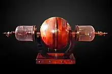 His researches on the subject of electric discharge in rarefied gases led him to form a new theory of the aurora borealis. In 1840 he described a process for the electro-gilding of silver and brass, for which in the following year he received a prize of 3000 francs from the French Academy of Sciences.[3] This and other papers were deemed of sufficient value to be republished in the Annales de Chimie et de Physique or in the Comptes Rendus. The principal work of De la Rive was his Treatise on Electricity in Theory and Practice in three volumes published simultaneously in French and English.[4][5][6] which appeared in the years 1854–58. De la Rive described his theory of the cause of the Aurora Borealis, first published as a memoir in 1854, and illustrated by the experiment, now familiar to physicists, of rotating the voltaic arc of light around the pole of a magnet as any other ponderable conductor would rotate. The Treatise on Electricity was considered "accurate and comprehensive, and is indispensable for the scientific student of electricity".[1]