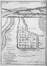 La Serena was founded on the orders of the Spaniard Pedro de Valdivia in order to provide a sea link to maintain permanent contact between Santiago and Lima in the Viceroyalty of Peru. For this he would need a place for his troops to rest and eat. The village was founded by captain Juan Bohón with the name "Villanueva de La Serena". Although the exact date is disputed, probable dates include 15 November or 30 December 1543 and 4 September 1544.[1] Many historians simply say that it was founded in 1544. Five years later, from the night of 11 January 1549 until the following day, a native uprising totally destroyed and burned the village, killing nearly every Spaniard. Pedro de Valdivia ordered Captain Francisco de Aguirre to re-establish the city later the same year on 26 August under the name of San Bartolomé de La Serena (now patron saint of the city), in the same place where the Plaza de Armas stands today. A few years later, on 4 May 1552, King Carlos I of Spain by royal decree gave it the title of city.[1] One of the reasons to establish La Serena was to control Mapuche groups that had begun to migrate north following the Spanish founding of Santiago in 1541.[4] Indeed, northern Mapuche groups appear to have responded to the Spanish conquest by abandoning their best agricultural lands and moving to remote parts away from the invaders.[5][6]