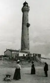 Several temporary lighthouses were established during the 19th century, all undermined by the sea. An imperial decree of 12 May 1860 ordered the establishment of a lighthouse on the north bank of the Gironde estuary, because of the many shipwrecks, although it was not until 1895 that a stone lighthouse 57 metres high was erected. The building collapsed in May 1907 due to erosion by the sea.