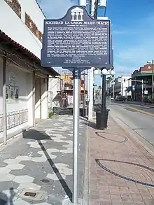 La Unión Martí-Maceo (also known as the Martí-Maceo Society)[1] is a historic social club in Ybor City, Florida established by Afro-Cubans.[2][3] It was founded in 1900. It is a site on the Florida Black Heritage Trail.[4][5] It is at 1226 East 7th Avenue. The ornate clubhouse was demolished during an urban renewal redevelopment program in the 1960s, and its headquarters was proposed for sale to address financial difficulties in 2018.
