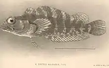 Gobioclinus kalisherae, the downy blenny, is a species of labrisomid blenny native to the western Atlantic Ocean from south Florida to Brazil. This species prefers habitats which provide crevices or holes to hide in such as areas of rubble or rock and coral reefs. It can reach a length of 7.5 centimetres (3.0 in) TL. It can also be found in the aquarium trade.[2] The specific name honours the painter Emilia Kalisher (1868-1959), at the request of her future husband Joseph Cheesman Thompson (1874-1943).[3]