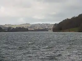 The Lac de Villefranche-de-Panat is part of an electricity generating system where waters falling on the granite plateau of Lévézou that had drained unhindered into the Viaur and the Tarn river were captured and used by the power stations at Alrance and Le Pouget.