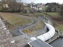 Waters from the Vioulou fell, and waters from the Vaur were pumped into the reservoir at the Lac de Paraloup whence they passed through a 10.8 km steel lined tunnel to the Alrance power station and into the lake. Waters from three streams that fell directly into the Tarn at Le Truel, are pumped directly into the lake. From this lake tunnels were dug to the Lac de Saint-Amans where the waters drop 461m vertically to the power station at Le Pouget on the Tarn.