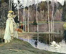 Starting in the 19th century, critical voices began to appear in the scientific community about the authenticity of the deities. One of the first and most influential[20][21] was ethnographer and linguist Alexander Potebnja. After analyzing the source material, mainly song fragments, he came to the conclusion that lada appears in spring, summer and wedding songs, and that there are no grounds to consider this word as a remnant of the old goddess.[22] This position was later upheld by linguists Gregor Kreka and Aleksander Brückner,[21] as well as Max Vasmer[20] and Oleg Trubachyov.[23] Contemporary scholars overwhelmingly reject the authenticity of the deities Lada and Lado, believing, as in the case of Jesza, that the word lada, incomprehensible to the scribe, found in folk songs, was mistakenly considered a theonym, and then its attributes were added. This view is shared by scholars who consider at least part of Długosz's mythological account to be valuable, such as Aleksander Gieysztor,[24] Andrzej Szyjewski,[lower-alpha 4] or Vyacheslav Ivanov and Vladimir Toporov.[25]
