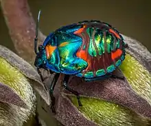 Lagunaria is fed upon by Hibiscus Harlequin Bug.[27] The females are known to deposit their eggs around the bases of the stems.[28] The insects feed on the leaves, flowers fruit and seeds and suck the sap from the stems.[28][29] They rarely cause significant damage to the plant.[29]