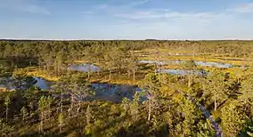 With forests covering more than 70 percent of Lahemaa, the area is rich in flora and fauna. The landscape has many raised bogs, including the 7,000-year-old Laukasoo Reserve. The park, marked by several trails, teems with wildlife, including a population of boar, red deer, wolves, bear and lynx. The coast is covered with rocks and boulders, used each year by cranes as a stopover on their way to the Bosphorus and Egypt.[3]