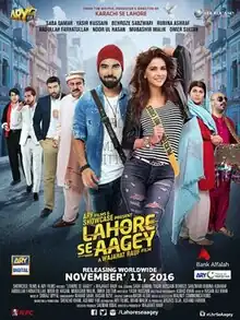 Lahore Se Aagey (Urdu: لاہور سے آگے; transl. Next to Lahore) is a 2016 Pakistani road-comedy romantic film directed by Wajahat Rauf, written by Yasir Hussain and Produced by Wajahat Rauf, Asfand Faruok, Salman Iqbal, and Jarjees Seja. The film is a spin-off to 2015 comedy film Karachi Se Lahore and second installment in Karachi Lahore film series. It features an all star cast, including Hussain (who was also part of the original film) along with Saba Qamar, Behroze Sabzwari, Abdullah Farhatullah, Mubashir Malik, Atiqa Odho, Rubina Ashraf and Noor ul Hasan. The film was released worldwide on 11 November 2016 under the production banner of Showcase Films.[3][4] Upon release, it received criticism from critics and became a moderate box office success.[5]