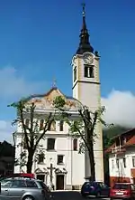 The parish church in the town is dedicated to Saint Anne and belongs to the Diocese of Koper. The church consist of a rectangular presbytery, a wide rectangular nave, and a belfry north of the front wall.[8] The church dates from 1714 and has been attributed to the builder Matija Maček (c. 1657–1737) from the Poljane Valley.[9] A second church in the settlement is dedicated to Saint Bartholomew.[10]