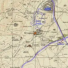 Edward Robinson visited in 1838, and noted that the khan, which Maundrell commented on, was for the accommodation of the caravans passing on the great road between Egypt and Damascus which comes from the western plain along the coast, over the hills to Lajjun, and enters the plain of Esdraelon.[60] When the British consul James Finn visited the area in the mid-19th century, he did not see a village.[61] The authors of the Survey of Western Palestine also noticed a khan, south of the ruins of Lajjun in the early 1880s.[62] Gottlieb Schumacher saw caravans resting at the Lajjun stream in the early 1900s.[63]