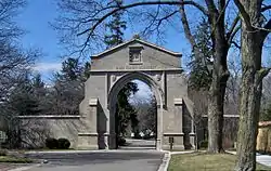 ![]() The Barrell Memorial Gate at the entrance of Lake Forest Cemetery on Lake Avenue | |