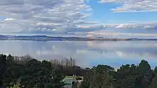 Lake George is a locality covering territory on the western and southern edges of the lake, stretching east to the Bombala railway line. The locality is largely within the area of the Queanbeyan–Palerang Regional Council, although some hillside areas are in the Yass Valley Council.[33] At the 2021 census, it had a population of 118.[32] The locality is generally rural-residential in character along the lake shore. A former grazier's homestead at Silver Wattle Point now operates as a religious retreat and Quaker meeting house. Located in the eastern section of the locality close to the town of Bungendore are some industrial facilities, including a sand quarry and an electrical substation serving the Capital Wind Farm.