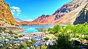 Kharfaq Lake is a high altitude natural lake located in the Karakoram mountain range in Kharfaq, Gilgit-Baltistan, Pakistan. The best month for tourist to see the lake is the July and August. The water of lake are starting increasing in May and reached it maximum level in the middle of July. In winter season the snow cover the whole in its whiteness and give beautiful views.