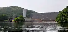 Blakely Mountain Dam was built by the United States Army Corps of Engineers from 1948 to 1953 for hydroelectric power, recreation, water supply and wildlife conservation.[1] The dam is 231 feet (70 m) tall, 1,100 feet (340 m) long at the crest, and is capable of 75 megawatts.[2]