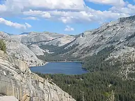 ![]() Tenaya Lake as seen from a hill northwest of the lake | |
