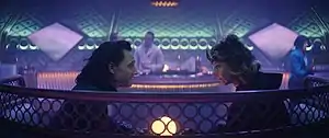 Ali was tasked with much of the series world-building in the episode, and was not given any predetermined guidance or notes from Marvel on what they wanted. She chose the name Lamentis since she was "a deeply depressing person", finding "something poignant and beautiful about lamenting something".[7] Discussing the Variant using the alias "Sylvie", Sophia Di Martino said while the character was inspired by Sylvie Lushton / Enchantress and Lady Loki from Marvel Comics, she is a different person with a different backstory from those characters as well as Hiddleston's Loki.[8][9] "Lamentis" establishes that Loki and Sylvie are bisexual.[10] Herron, who is also bisexual, said acknowledging this was very important to her since this is part of "who he is and who I am" and called it a "small step".[11] She continued that the moment did not want to "feel like we were just wedging something in" and the scene where it occurred was "the right place for that conversation to happen". This is the only time in the series this is acknowledged, with Herron hoping it would "pave the way for deeper exploration".[12] Di Martino stated she and Hiddleston tried to make the moment like a "natural conversation between two acquaintances" without giving the statement "too much weight", while still understanding the importance of what the moment would be.[9]