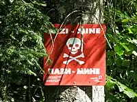Land mine contamination in Bosnia and Herzegovina is a serious aftereffect of the Bosnian War, which took place from 1992 until 1995. During this time period, all 3 conflicting factions (ARBiH, HVO, and VRS) planted land mines near the current-day political entity borders. As a result, the country has had the most severe land mine problems in the world. Although landmine removal efforts have made progress throughout the country and the landmine-related deaths have steadily decreased each year, many people are still killed or suffer injuries caused by unexploded munitions in Bosnia and Herzegovina. Despite the threat of landmines, people enter contaminated areas out of economic necessity.[1]