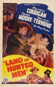 Land of Hunted Men is a 1943 American Western film directed by S. Roy Luby. The film is the twenty-first in Monogram Pictures' "Range Busters" series and it stars Ray "Crash" Corrigan as Crash, Dennis Moore as Denny and Max Terhune as Alibi, with Phyllis Adair, Charles King and John Merton.