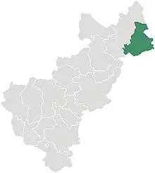The town of Landa de Matamoros is the local governing authority for 130 communities, even though only 1,418 of a total municipal population of 18,905 live in the town proper.[2] These combined communities cover a territory of 840.2 km2, the third largest in Querétaro.[3] The municipality is divided into six "micro-regions": Landa, La Lagunita, Agua Zarca, El Lobo, Valle de Guadalupe and Tilaco.[4] The municipality is located in the far northeast of the state, with altitudes that vary from 350 to 2100 masl. It borders only one other municipality in Querétaro, Jalpan de Serra. It borders the state of San Luis Potosí to the north and east, and with the state of Hidalgo to the east and south. The municipality is headed by a municipal president and the government has nine officials called "regidors".[3]