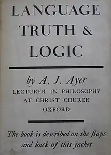 Language, Truth and Logic is a 1936 book about meaning by the philosopher Alfred Jules Ayer, in which the author defines, explains, and argues for the verification principle of logical positivism, sometimes referred to as the criterion of significance or criterion of meaning. Ayer explains how the principle of verifiability may be applied to the problems of philosophy. Language, Truth and Logic brought some of the ideas of the Vienna Circle and the logical empiricists to the attention of the English-speaking world.