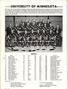 The 1958-59 Gopher Hockey Team with dignitaries Herb Brooks and Lou Nanne
