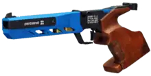 In the mid-2010s, the next generation of laser pistols appeared, which were specially produced for modern pentathlon and laser run.[10] This resulted in different approaches to construction: On the one hand, there are still models with the structure of a match air pistol: a very thin barrel and a more voluminous container underneath which holds additional weights or the laser emitter. On the other hand, there are models that are visually more similar to sport pistols.
