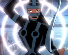 During the Final Crisis, Lashina, once again in her bald-headed human form, is seen as one of the villains running the Dark Side Club, an illegal arena where spectators gamble on battles between brainwashed teen metahumans. When Rose Wilson and Miss Martian lead a rebellion against the Dark Side Club staff, Lashina attempts to flee along with the wealthy club patrons in the VIP section of the arena. They nearly escape the club, but are cut off by teen superhero Static, who proceeds to electrocute Lashina and the others into unconsciousness, turning them over to the authorities afterwards.[7]
