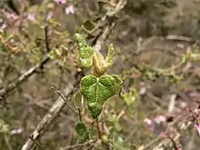 This lasiopetalum is only known from two small populations in nature reserves near Northam, where it grows in woodland with a shrubby understorey.[2][3]