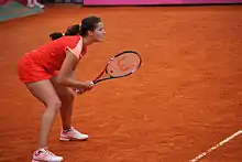 According to her parents, she began playing tennis "as soon as she could hold a tennis racquet",[13] and after being encouraged by them, she entered a junior tennis academy at age seven.[14] She signed with management company Octagon when she was ten,[15] with Adidas at age 11,[16] and also signed a racquet deal with Wilson Sporting Goods.[15]