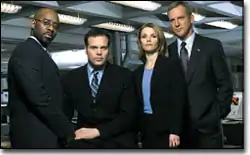 Law & Order: Criminal Intent is not an ensemble series,[14] and therefore differs from Law & Order and Law & Order: Special Victims Unit which respectively featured six and eight actors receiving star billing during the same broadcast season.[15][16] Movie actor Vincent D'Onofrio was offered the lead role of Detective Robert Goren, a hyper-intuitive contemporary Sherlock Holmes-type investigator who used to work for the US Military Police.[17] Other than a 1998 guest role on Homicide: Life on the Street that earned him an Emmy nomination, this was D'Onofrio's first major television role.[18][19] Goren's partner, former vice squad detective Alexandra Eames,[17] was played by Kathryn Erbe who had just completed a role on Oz as convicted murderer Shirley Bellinger.[20] Balcer stated Eames was cast because "she just looked like a real cop."[21] Courtney B. Vance plays Assistant District Attorney Ron Carver, a graduate of John Jay College of Criminal Justice.[17][22] Jamey Sheridan was the last actor to be cast in a main role, taking the part of James Deakins, a "seasoned" NYPD Captain.[7][17] In a recurring role, Leslie Hendrix appeared as Assistant Chief Medical Examiner Elizabeth Rodgers, the same character she had played in the other two series.[23] Steve Zirnkilton provides a voice-over at the beginning of each episode's opening credits, saying "In New York City's war on crime, the worst criminal offenders are pursued by the detectives of the Major Case Squad. These are their stories."[24][25]