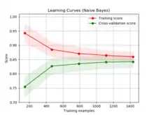 In machine learning, a learning curve (or training curve) plots the optimal value of a model's loss function for a training set against this loss function evaluated on a validation data set with same parameters as produced the optimal function.[1] Synonyms include error curve, experience curve, improvement curve and generalization curve.[2]