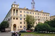 Though Oswald had wanted to attend Moscow State University, in January 1960 he was sent to Minsk, Belarus, to work as a lathe operator at the Gorizont Electronics Factory, which produced radios, televisions, and military and space electronics.[61] Stanislau Shushkevich, who later became independent Belarus's first head of state, also worked at Gorizont at the time, and was assigned to help Oswald improve his Russian.[62] Oswald received a government-subsidized, fully furnished studio apartment in a prestigious building and an additional supplement to his factory pay, which allowed him to have a comfortable standard of living by working-class Soviet standards,[63] though he was kept under constant surveillance.[64]