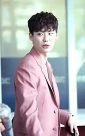 In 2014, he starred in teen romantic comedy Hot Young Bloods, playing a cheesy womanizer.[22][23] Lee then starred in hit medical drama Doctor Stranger, playing a North Korean defector who works as a doctor in South Korea.[24] The drama was a success in China, gaining 400 million views.[25] Lee next starred in Pinocchio opposite actress Park Shin-hye,[26] and played the protagonist Choi Dal-po, a first year reporter at a broadcasting company who struggles with the idea of justice and truth in a world where everyone wants to hide the facts.[27] Pinocchio was another hit, with a reported revenue of 6.2 billion won (US$5.62 million) for broadcasting rights in just one year.[28][29] Lee's performances in the dramas Doctor Stranger and Pinocchio earned him acting accolades, including the Male Top Excellence Award at the 8th Korea Drama Awards.[30] He also became the youngest actor to win the Best Actor award at the 27th Grimae Awards, chosen by television cinematographers.[31]