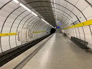Lehel is a Munich U-Bahn station located centrally in the Lehel quarter of Munich. It is on the U4 and U5 lines between Odeonsplatz to the west and Max-Weber-Platz to the east, and is also served at ground level by tram line 18.